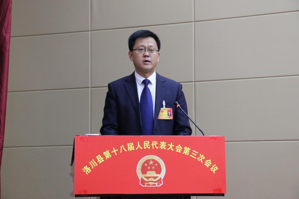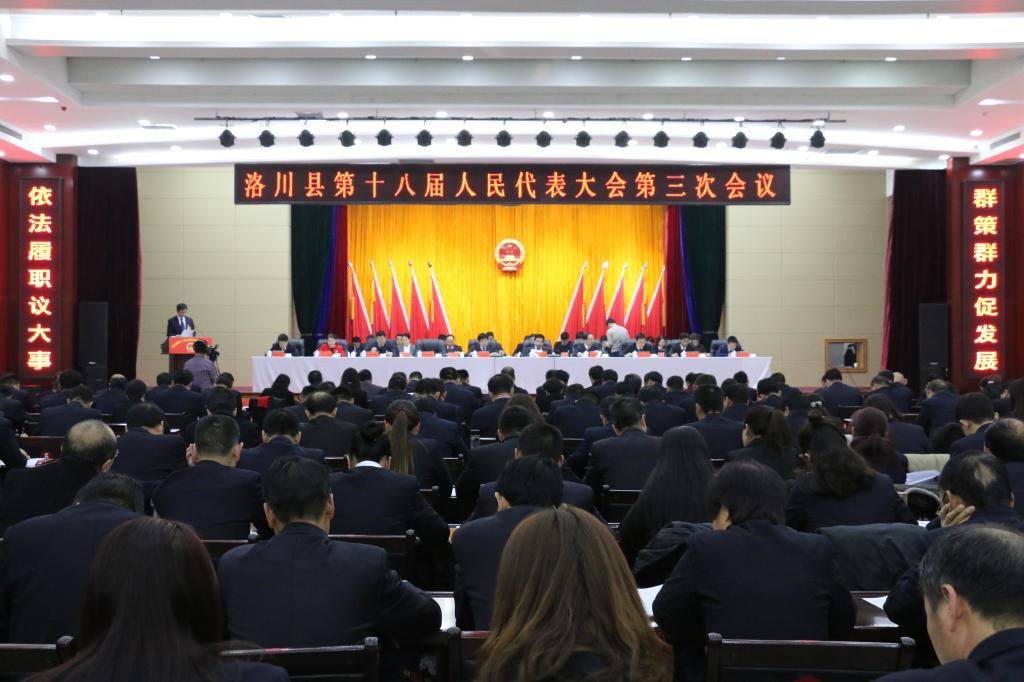 大会执行主席王明智、雷炜、张继东、王建斌、刘凯、王正仓、羽谦、高庆浩、郭军民、陈耀忠、魏恒、王晓宏、高竹莲、邓丽雅、李建,主席团其他成员及县十七届人大常委会领导季生荣在主席台就坐。县政协九届委员会的全体委员,不是代表的县级领导,县委、政府相关工作部门的负责人,部分省市驻洛单位负责人,驻洛的市五届人大代表等列席本次大会。大会由县人大常委会主任雷炜主持。