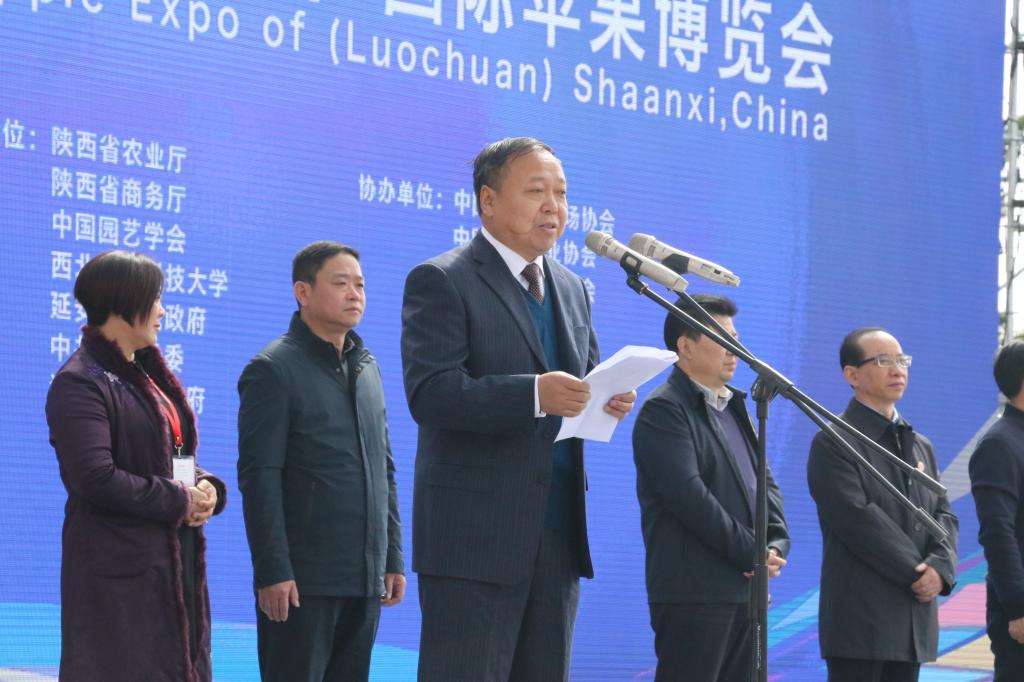 延安市副市长张宏在致辞中表示,延安是中国革命圣地、国务院首批公布的历史文化名城和中国优秀旅游城市。土地面积广阔,土层深厚,光照充足,是世界最佳苹果优生区和国家现代农业示范区。近年来,在中省大力支持下,延安以建设现代农业示范园区为抓手,稳步扩大苹果基地规模,全面实施现代标准化生产技术,强力推进苹果产业后整理,全力做大做强做优苹果产业,13个县区全部建成省级优质苹果基地县,成为陕西第一、全国仅有。全市苹果种植面积达到365万亩,今年预计产量330万吨,有机、绿色苹果基地认证面积已突破100万亩。全市农民收入的一半、果农收入的70%来自苹果,苹果已成为延安农民脱贫奔小康、实现致富梦的支柱产业。延安将充分利用好一年一度的中国·陕西(洛川)国际苹果博览会这一极具影响力的国际国内苹果行业的交流平台,学习先进地区的生产技术、营销理念和发展经验,继续实施“基地北扩、提质增效、转型升级”战略,把延安建成中国最大最具影响力的现代化果业强市,让苹果产业真正成为老区人民的百年致富产业。