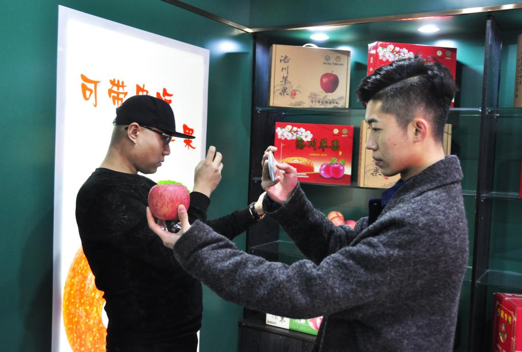 在吉祥宏图洛川苹果直营店里,两个小伙子手拿着苹果拍个不停,一打听,才知道他们是在网上销售洛川苹果的当地分销商。网店分销商弘玉告诉记者,“洛川苹果的品相、颜色、口感都特别好,而且它这个甜跟我们这儿的苹果不一样,能一直都留在嘴里……虽然洛川苹果的价格高出了其它苹果许多,但是我的顾客能接受,我就认为它好。”